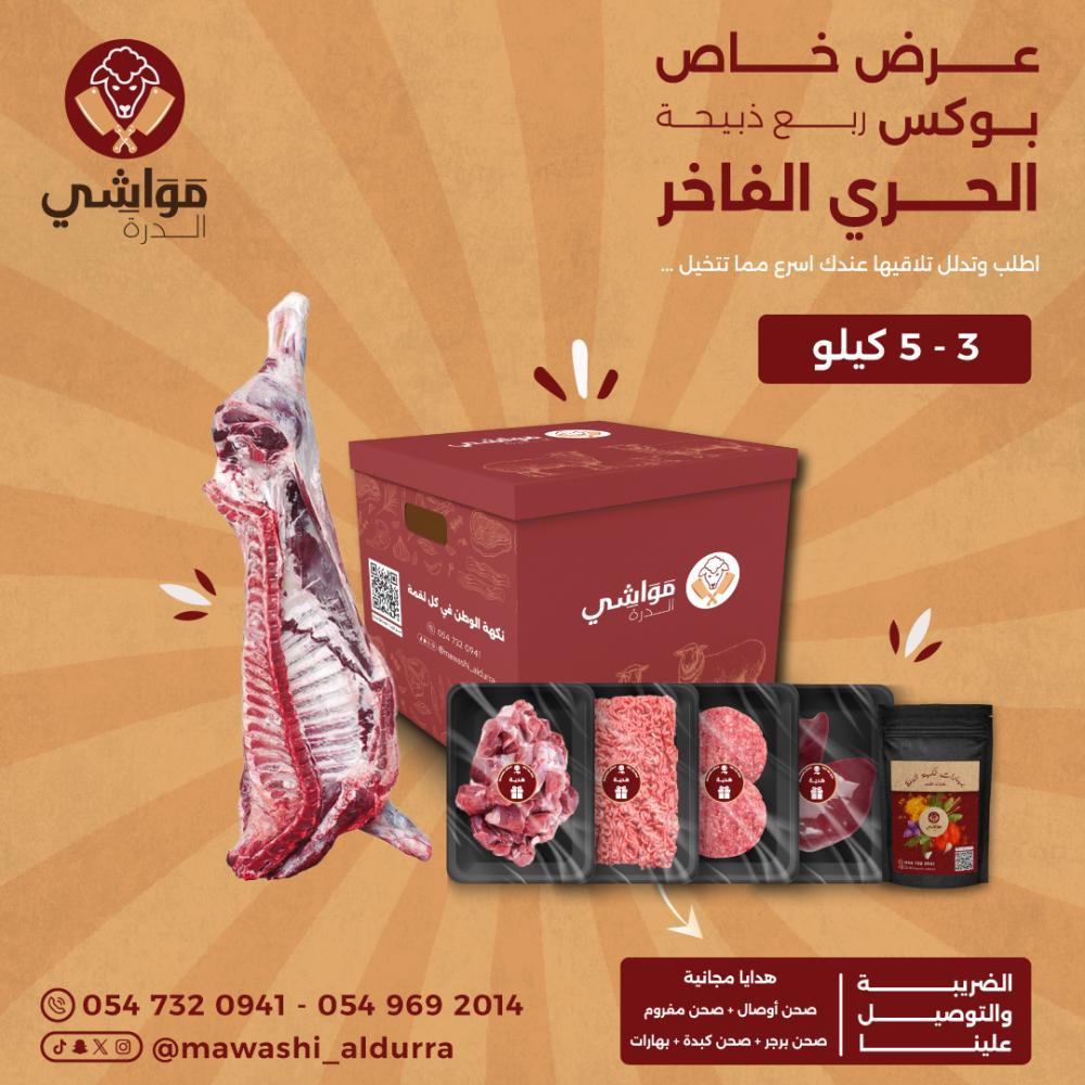 ربع ذبيحة الحري من متجر مواشي الدرة تعد بمثابة تجربة مميزة من اللحم الطازج، الذي يتميز بجودته العالية وطعمه اللذيذ، حيث يتم اختيار اللحوم بعناية من أجود الأنواع لضمان نضارة ولذة كل وجبة، لذا سواء كنتم تخططون لوجبة عائلية أو مناسبة خاصة، فإن ربع ذبيحة من مواشي الدرة هو الخيار المثالي لتحضير أشهى الأطباق، التي يمكن أن تجمع بين قطع لحم غنم حري التي تفضلونها، فضلاً عن كونها وجبة لذيذة وغنية بالبروتين والعناصر الغذائية الضرورية.